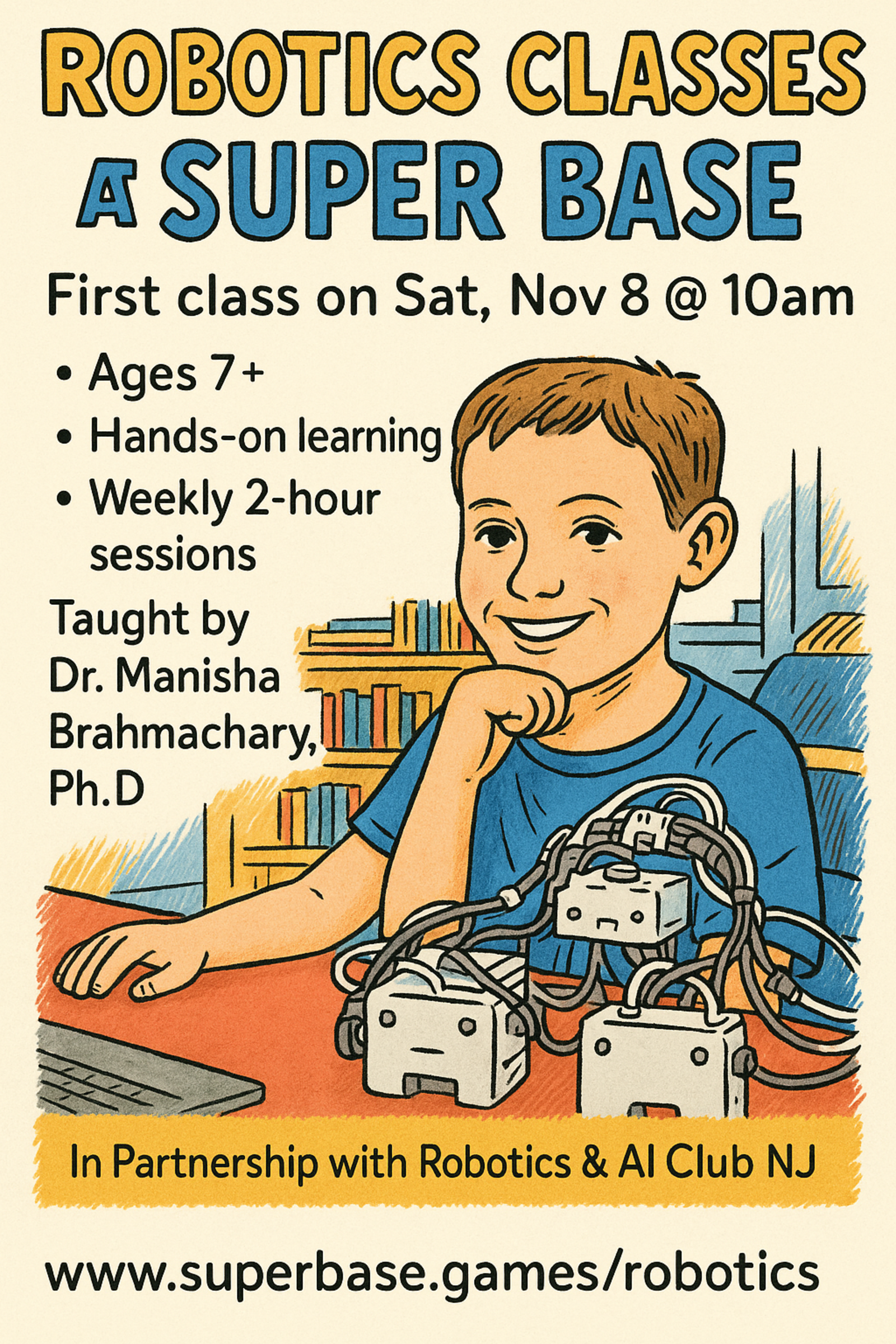 This class is in partnership with Robotics & AI Club NJ, taught by Dr. Manisha Brahmachary, a seasoned Ph.D data scientist and award-winning innovator with 15+ years in STEM. She has taught students at various levels programming, machine learning and robotics in her career. Through her company RAICNJ she empowers young minds through hands-on coding and engineering.