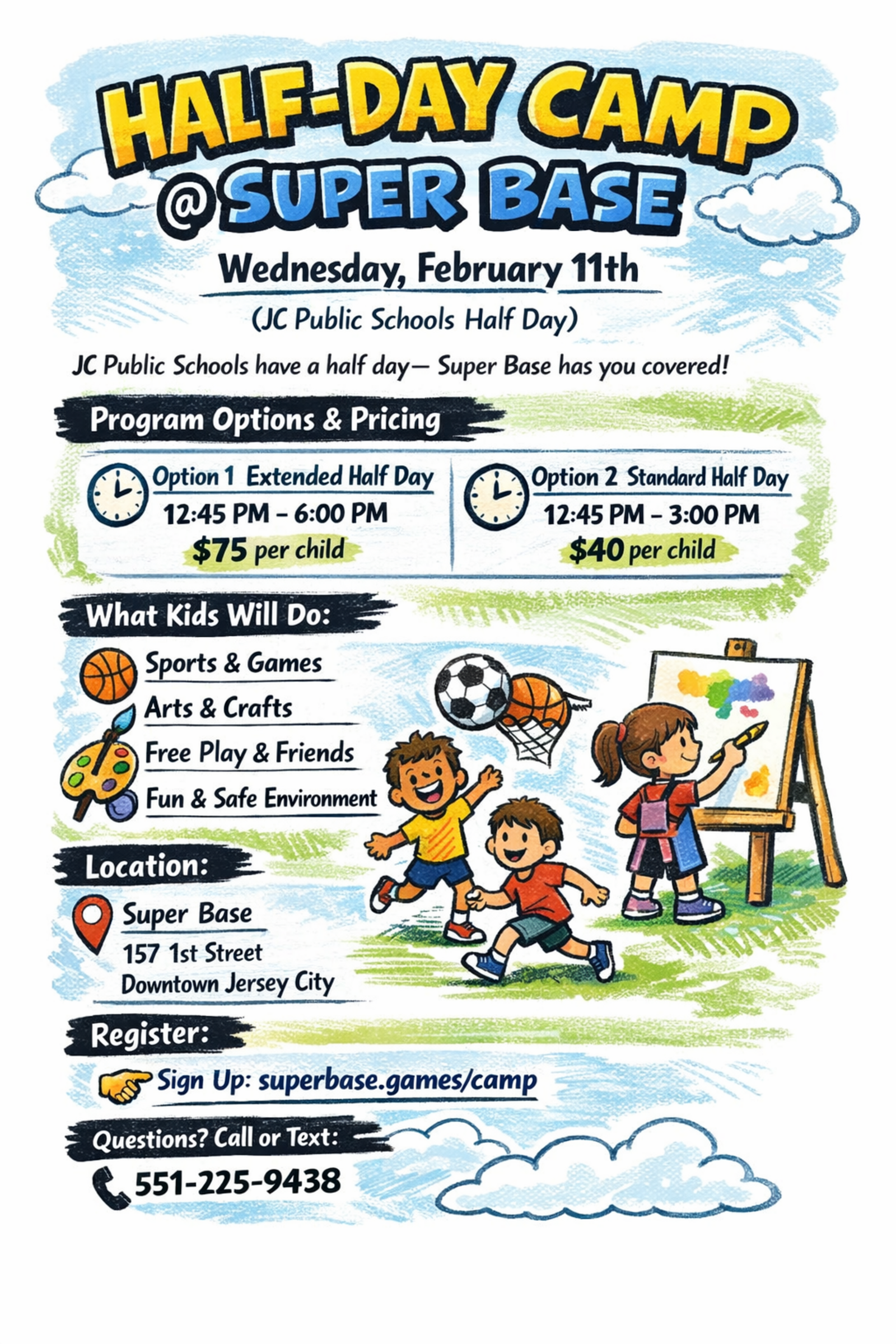 Come explore and enjoy all that Super Base has to offer. Free play multiple sports, games and activities, in a safe, unstructured free play zone!